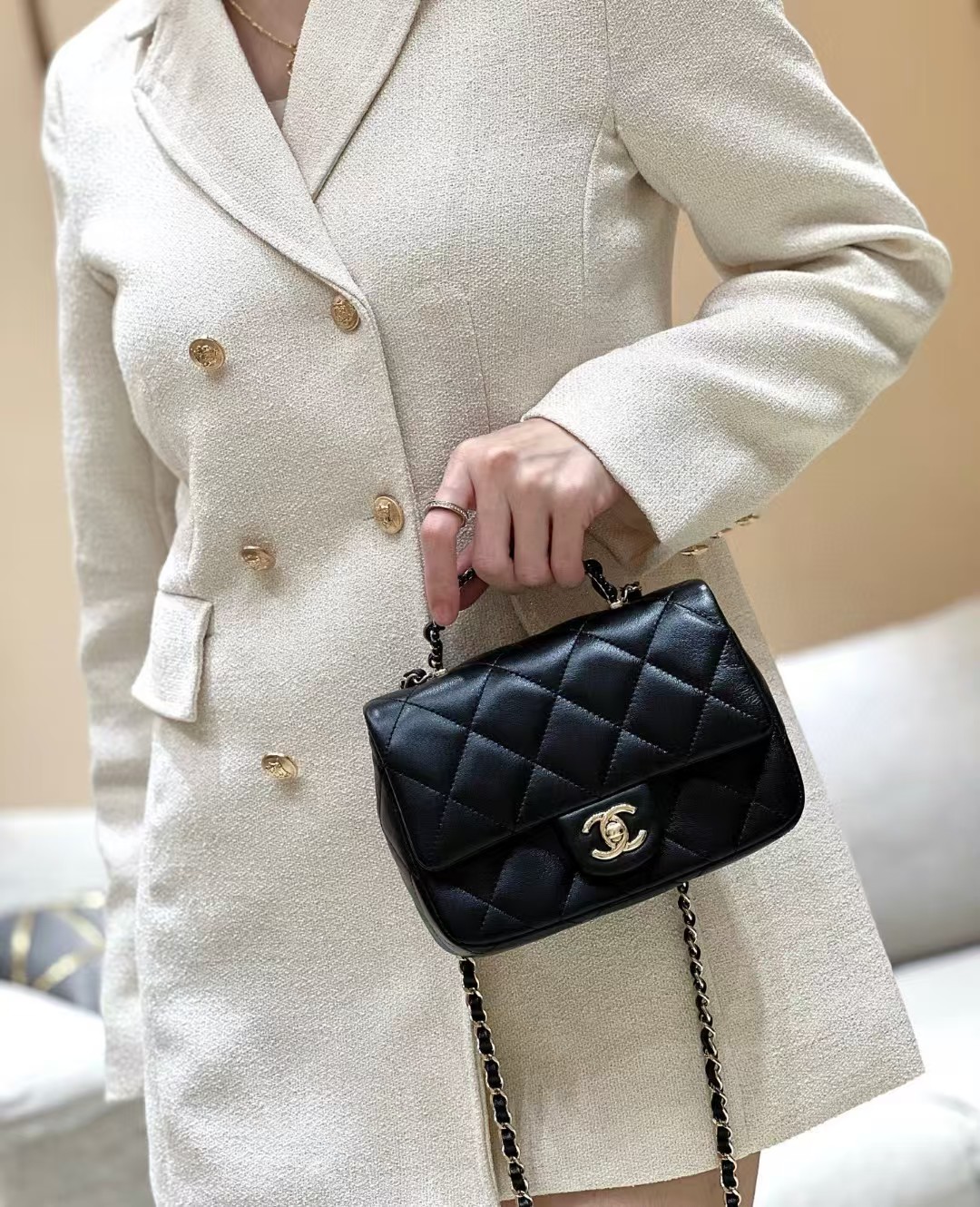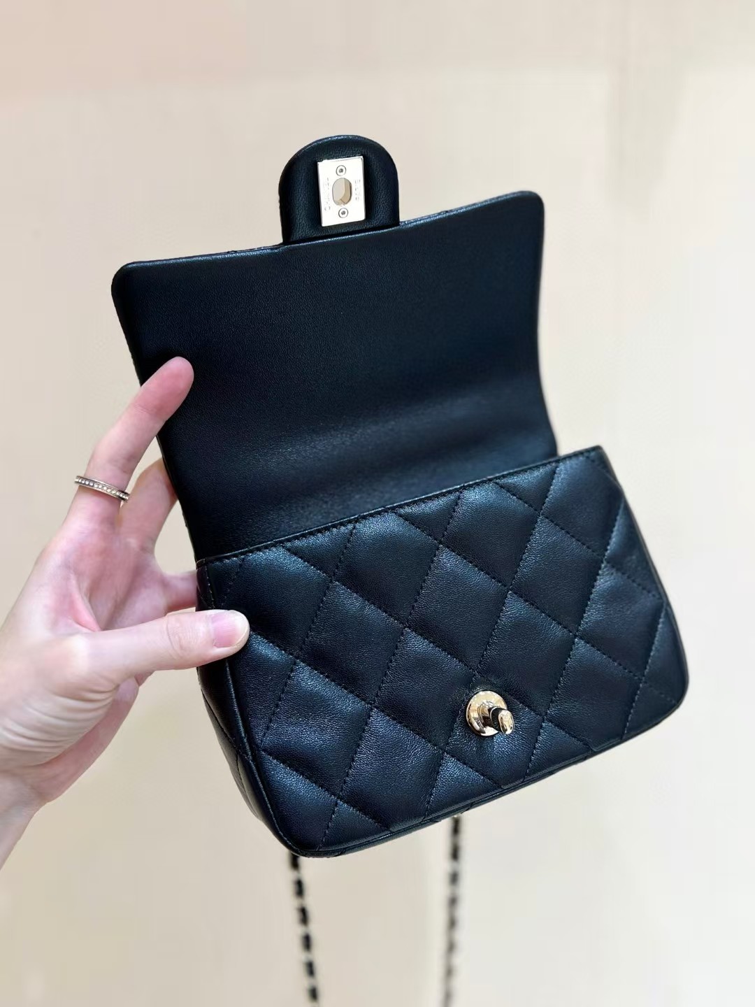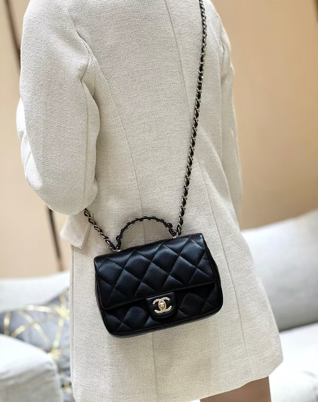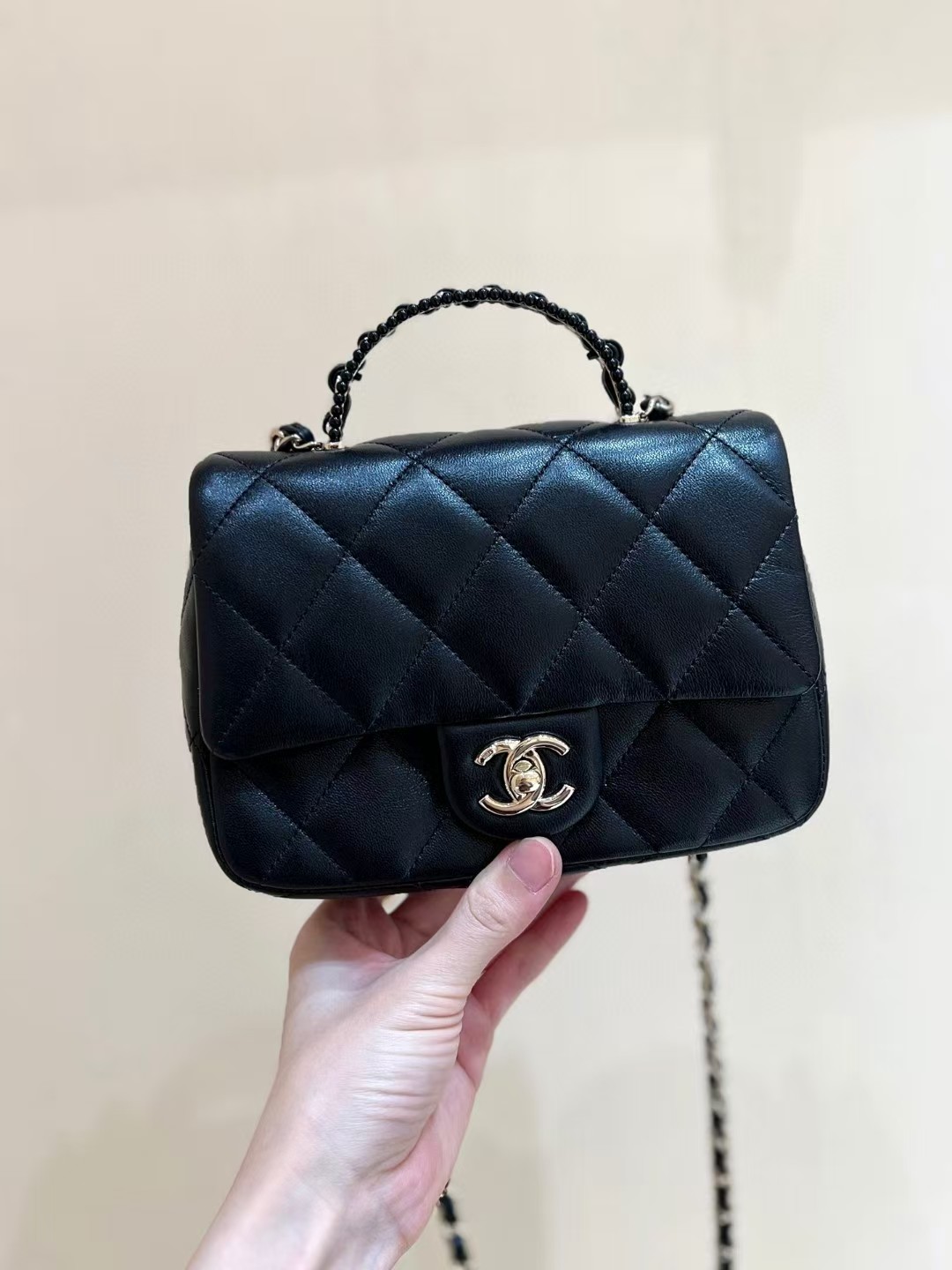 【介绍】 25P 春夏预告系列。Chane1 25P 手柄cf大mini,黑金太太美了,大mini这个版型已经是超级经典了新出的这个手柄很有特色哦容量也大,大手机也可以放下推荐!