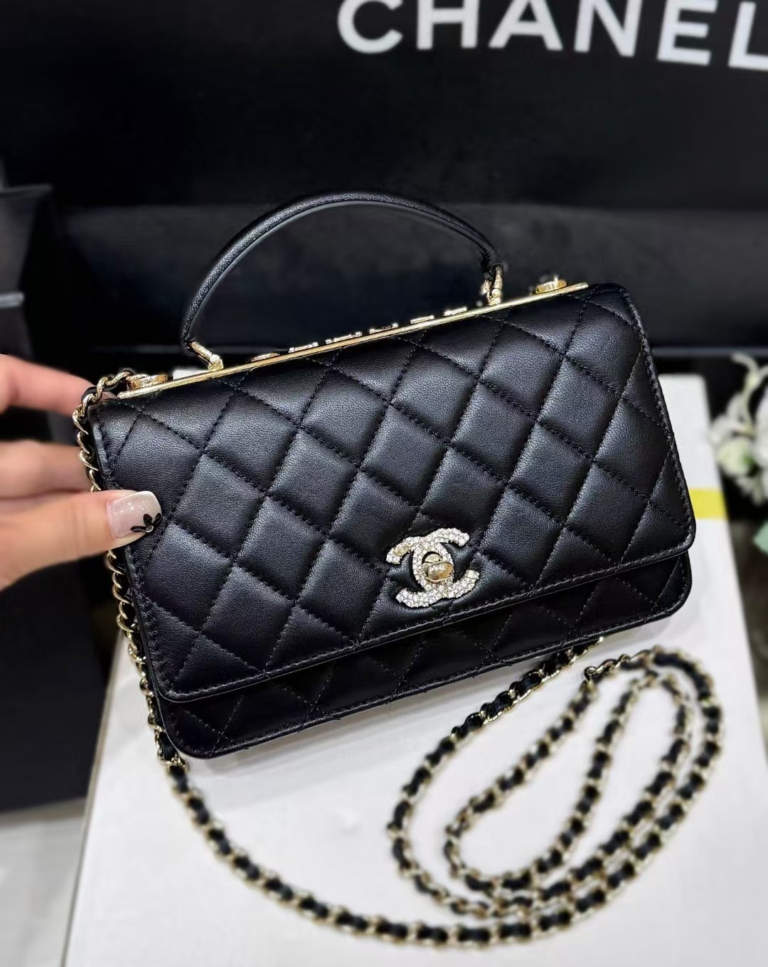 【介绍】 25S 春夏系列。Chane1 25s Trendy cc手柄WOC,全球限量版满钻cc,超贵气WOC发财包是非常实用尺寸,手提也是非常好看还可以放下大手机超级时尚和百搭!