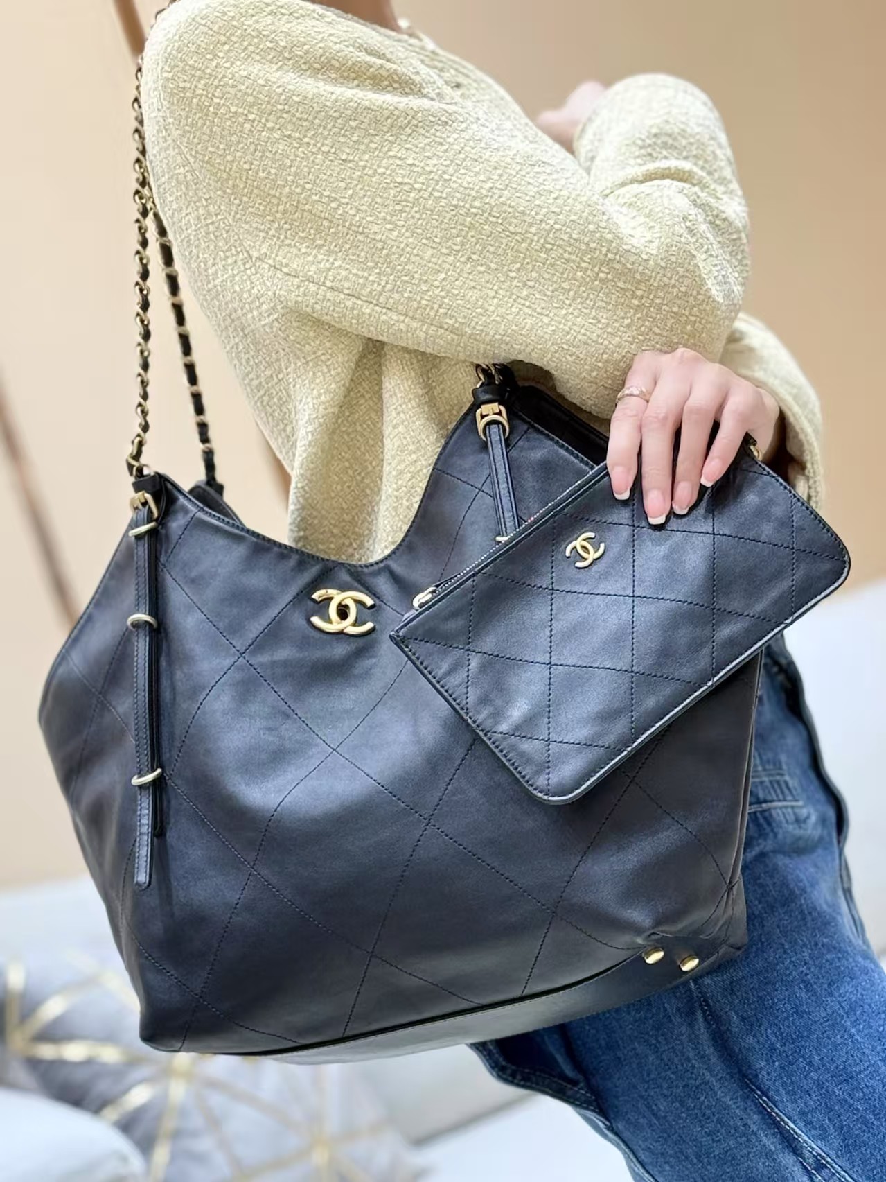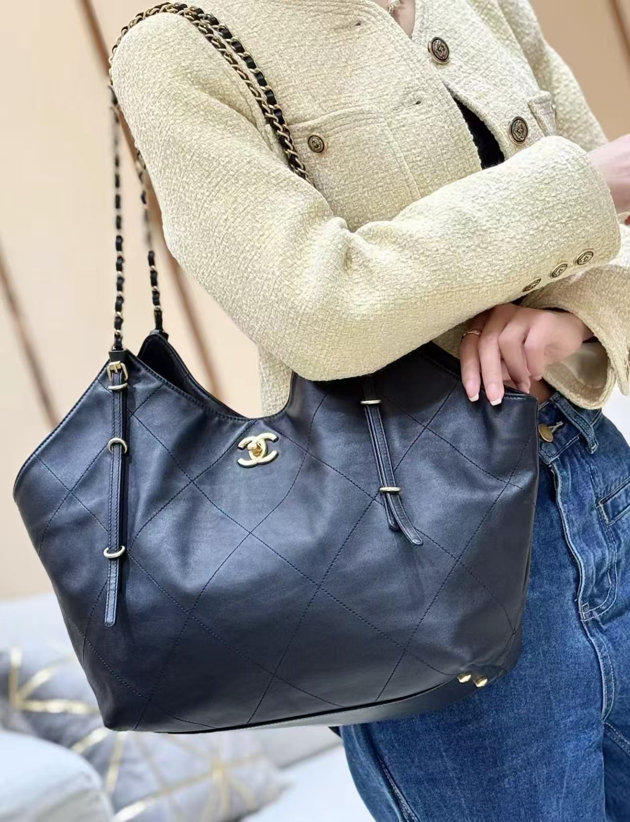 【介绍】 25S 春夏系列。Chane1 25s 权志龙同款 tote,小香高定走秀款大tote!非常火爆容量很大,超级时尚和百搭!推荐。