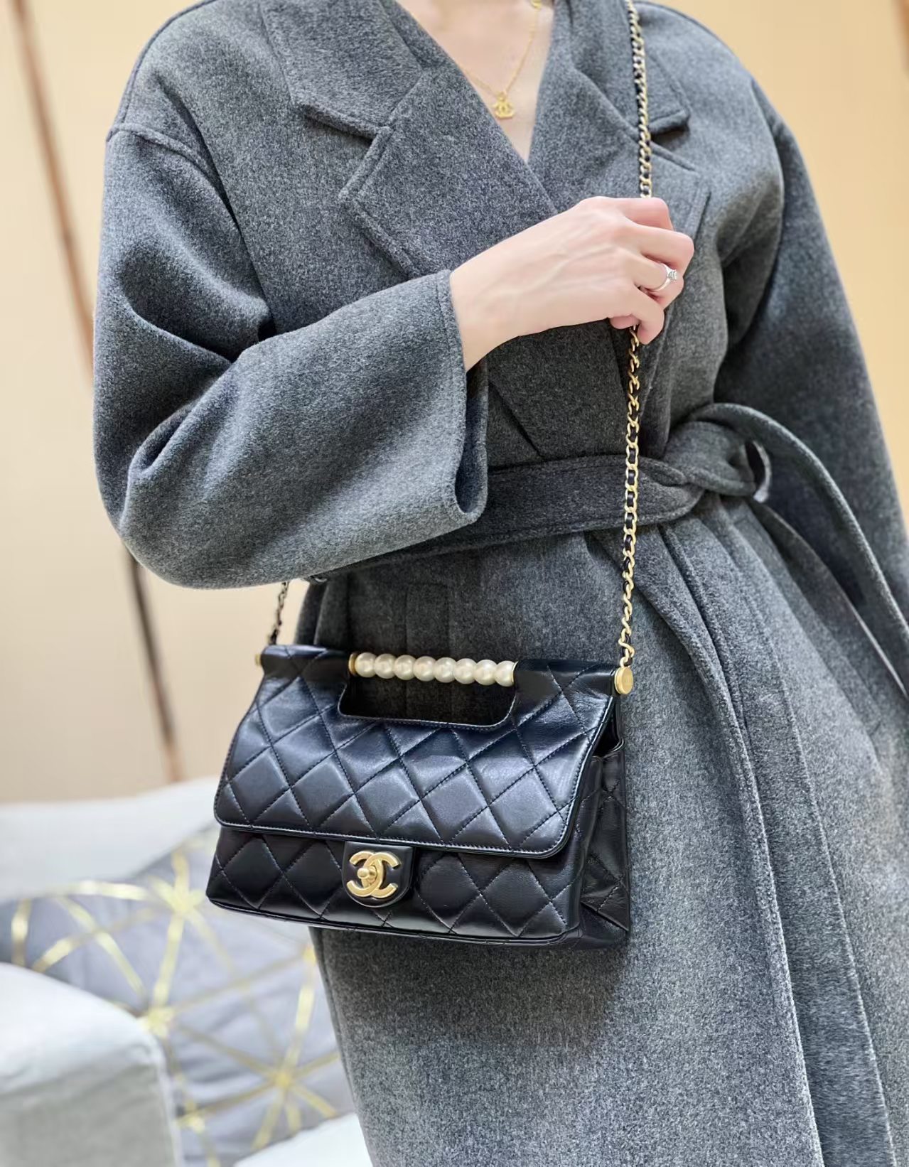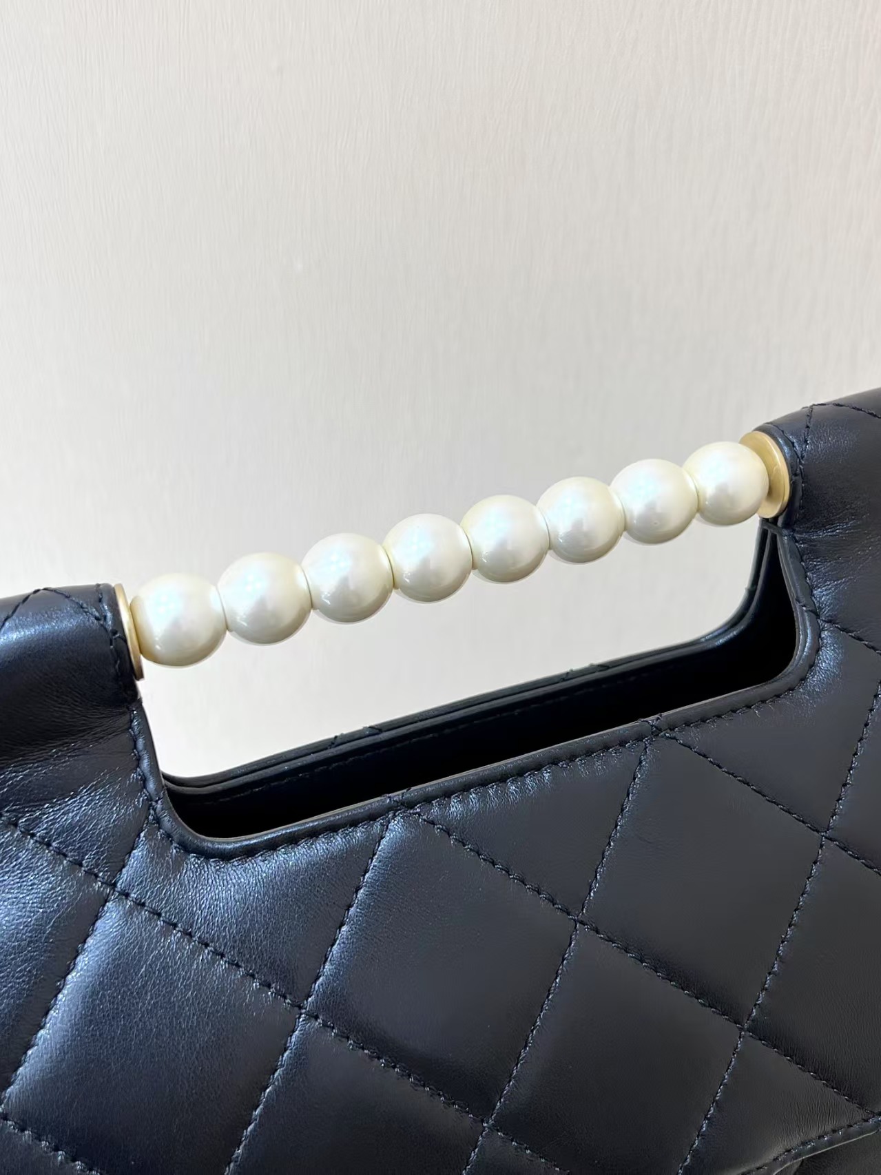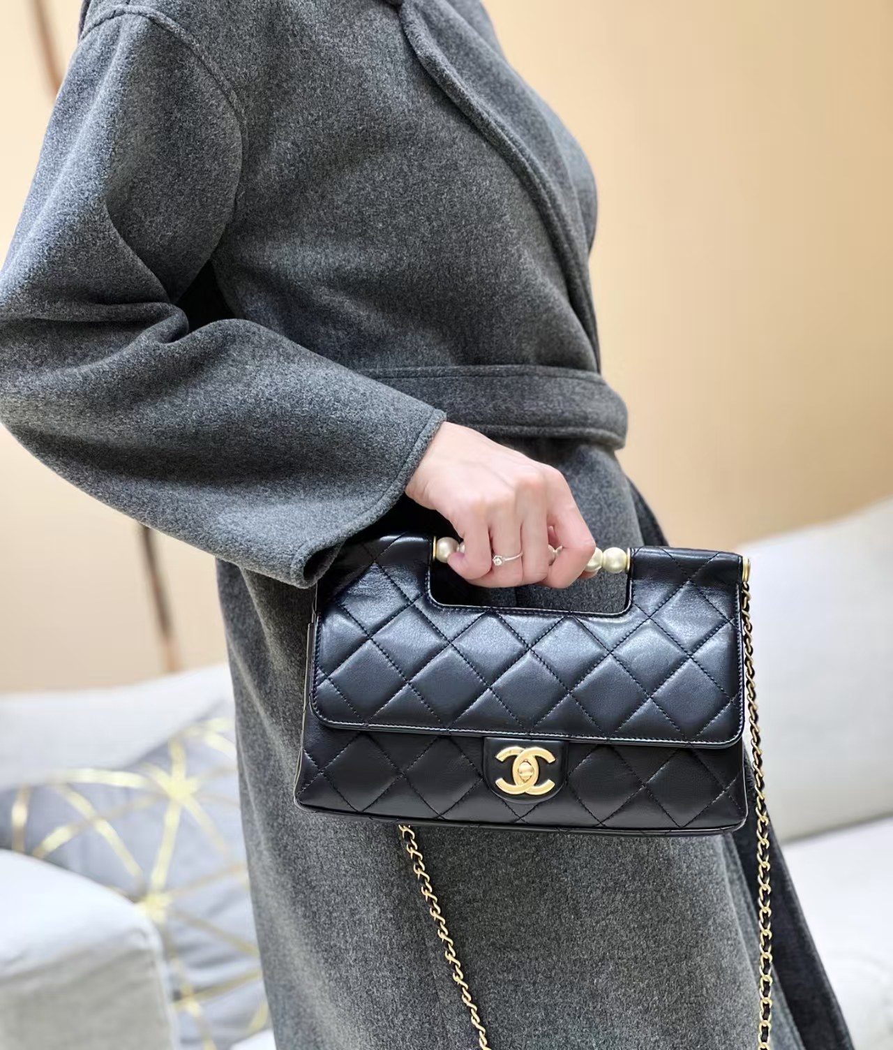 【介绍】25P 春夏预告系列。Chane1 25P 珍珠手柄包,超级经典的版型,珍珠控可以入手啦黑金还是非常大气时尚的上身很好搭配,推荐!