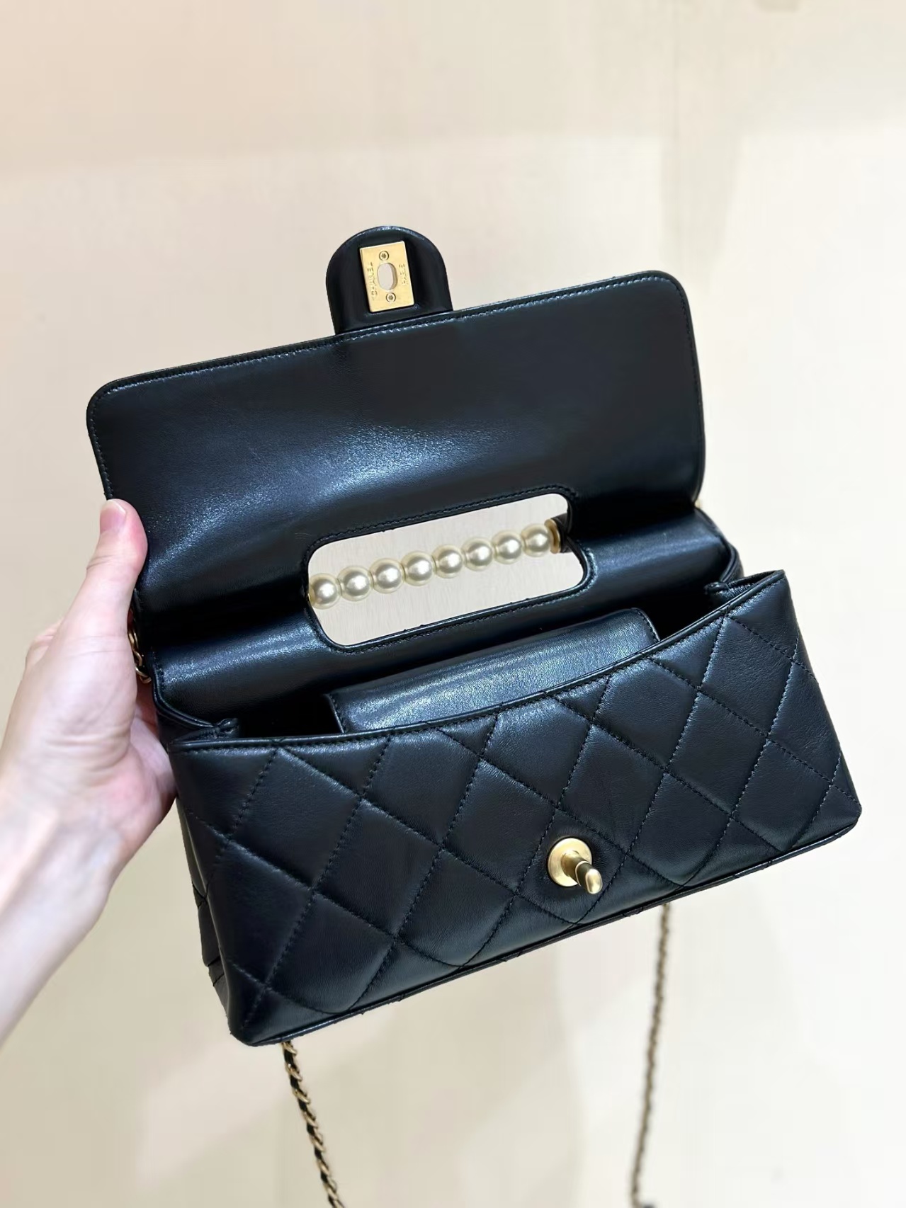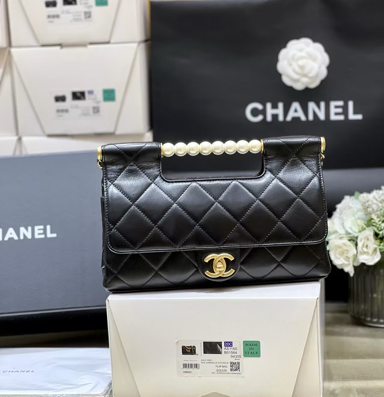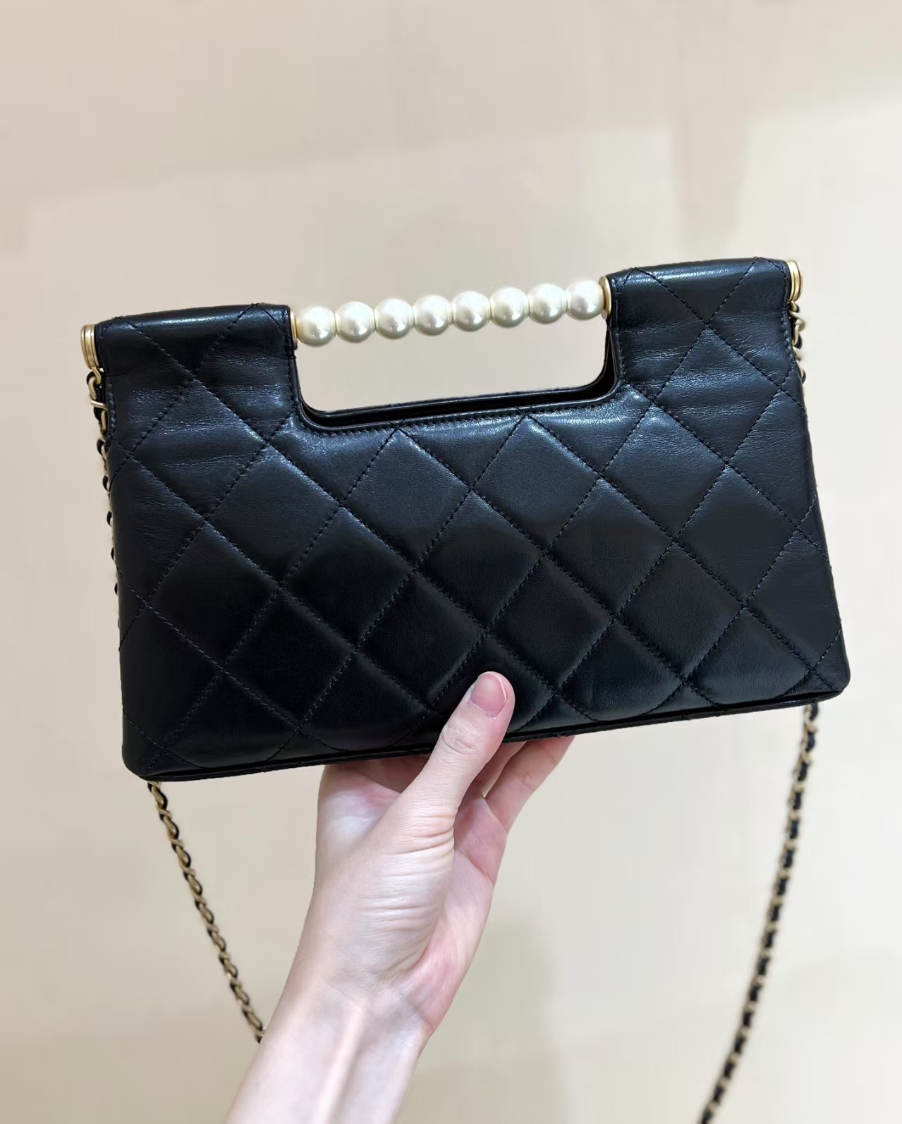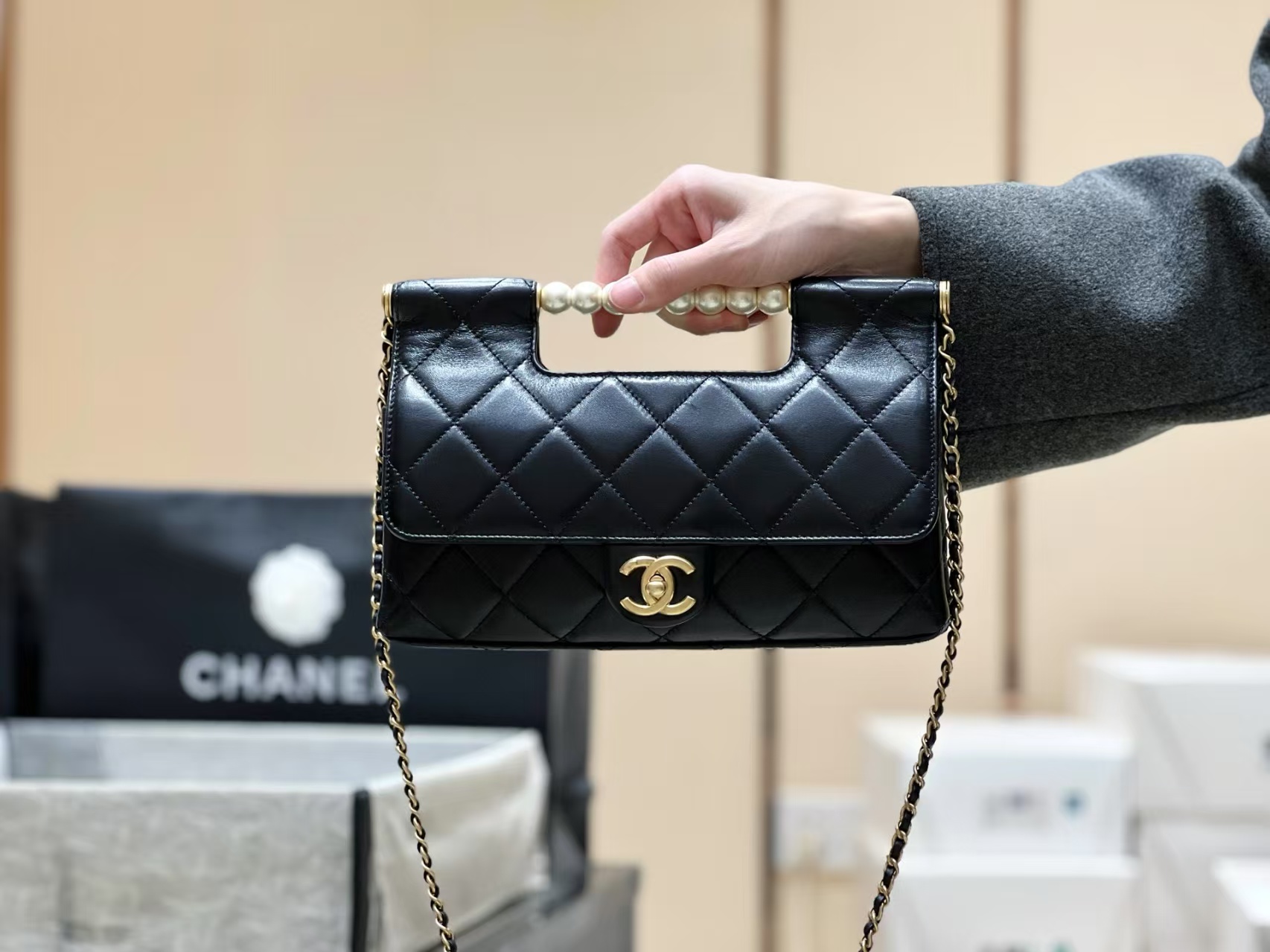【介绍】25P 春夏预告系列。Chane1 25P 珍珠手柄包,超级经典的版型,珍珠控可以入手啦黑金还是非常大气时尚的上身很好搭配,推荐!