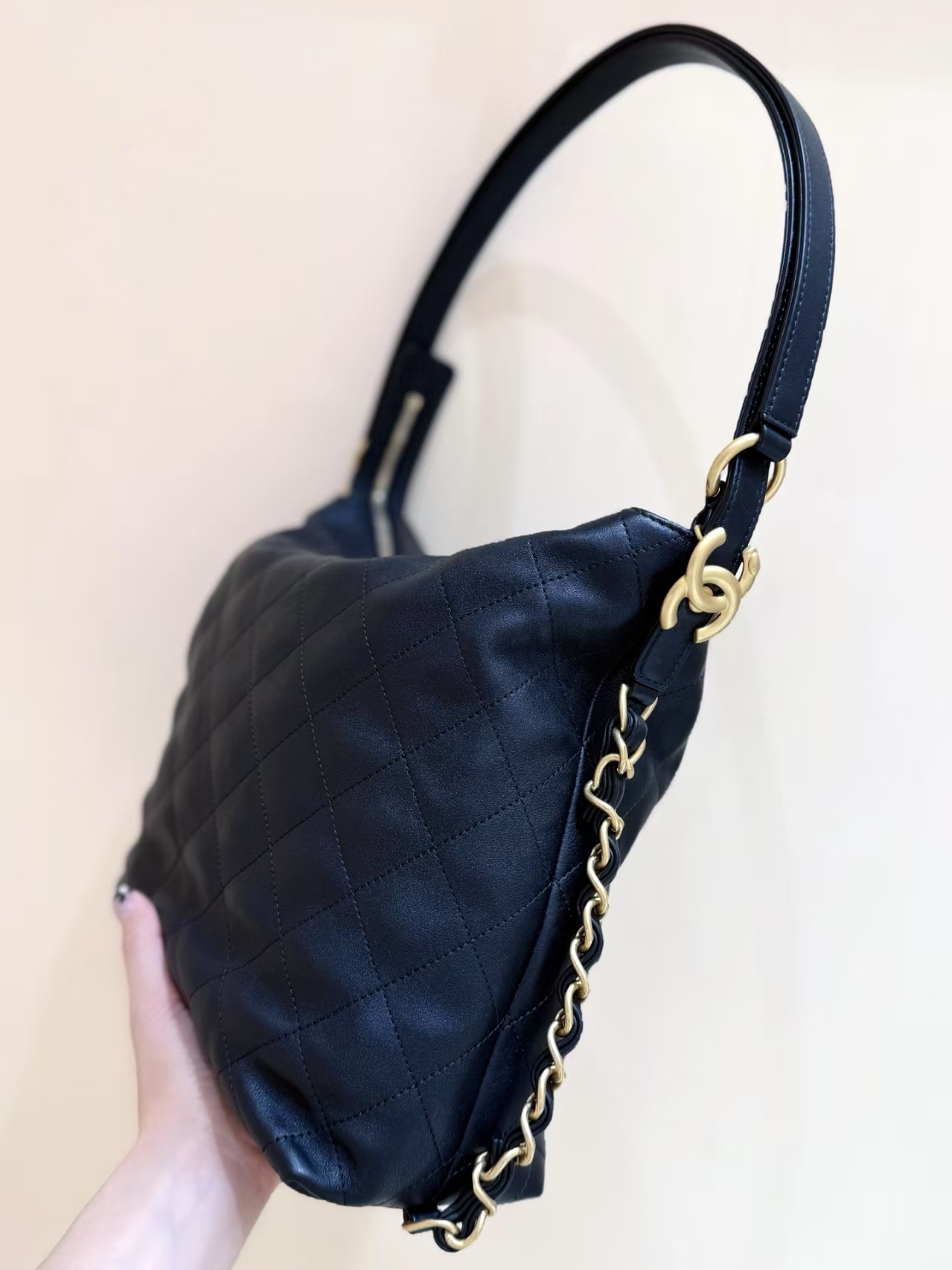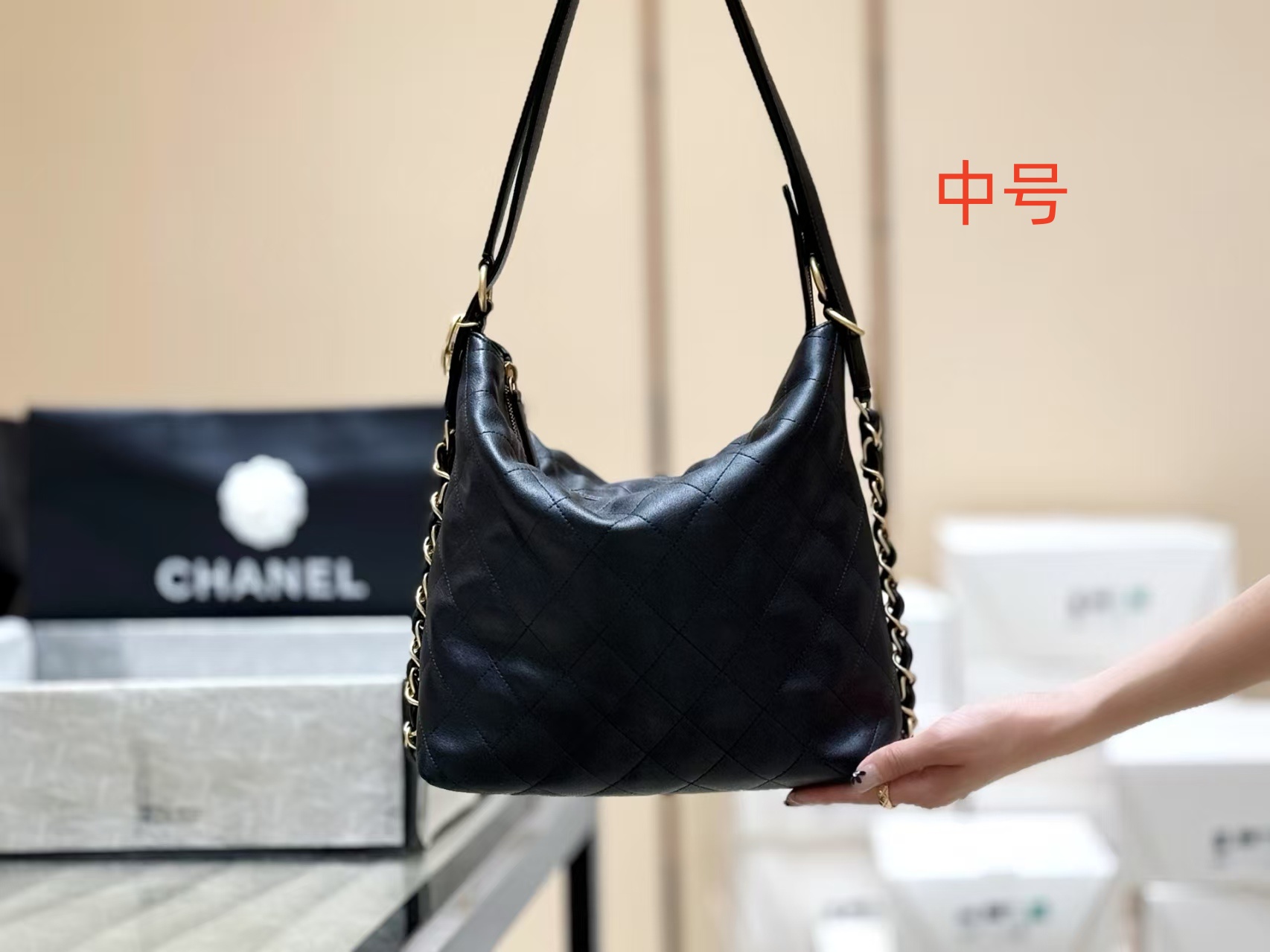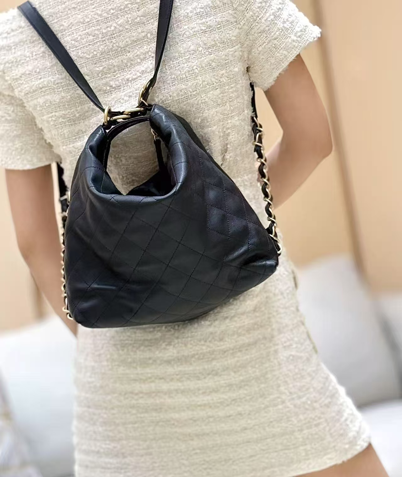 【介绍】 25S 春夏系列。Chane1 25s Hobo两用包,走秀上推荐的包包!很好用非常低调经典的款式可以单肩背,也可以调节双肩背,容量很大,超级百搭!推荐