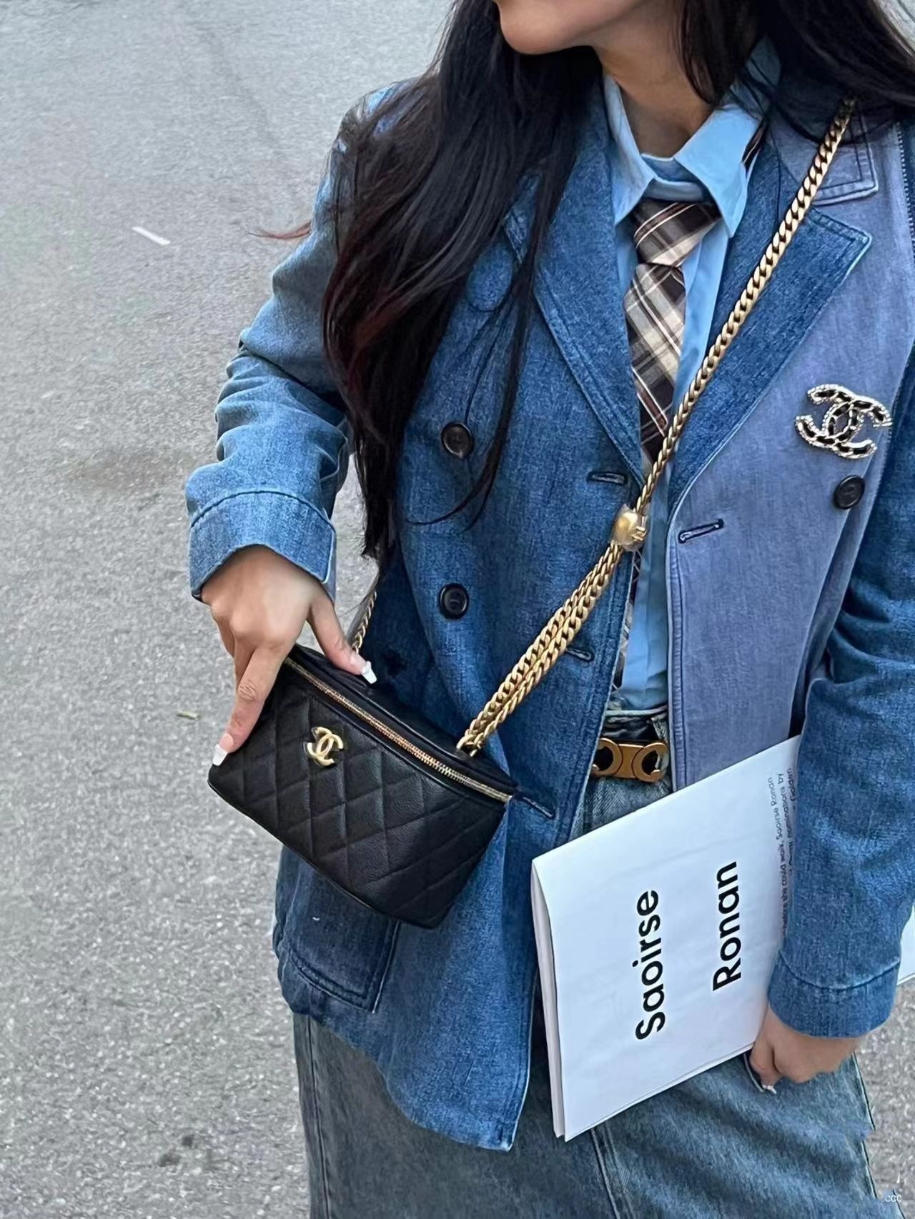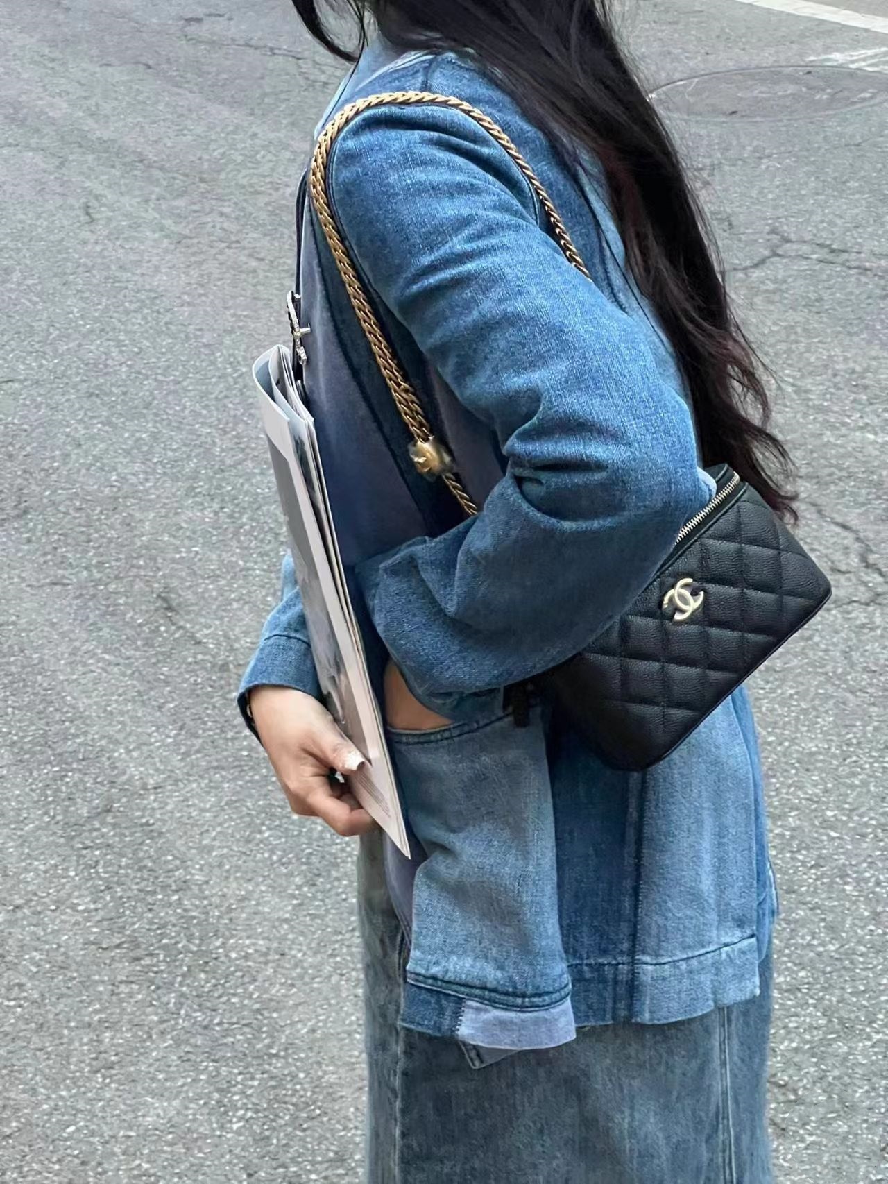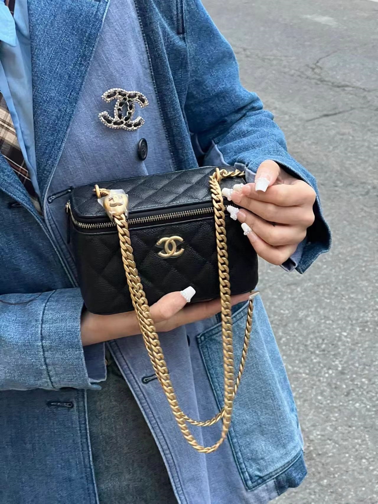 香奈儿这款我想买好久了,黑色经典百搭,配啥都好好看,包的质感我爱了,荔枝纹真的绝,有耐磨又能装!!
