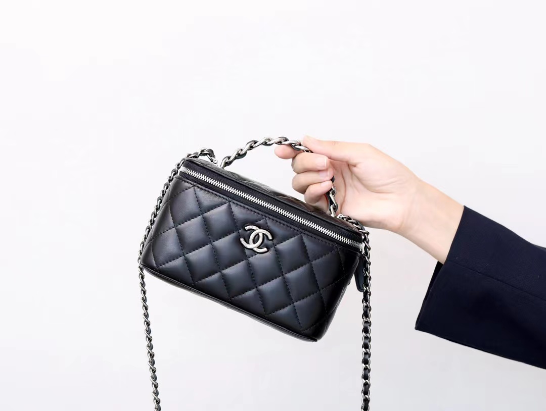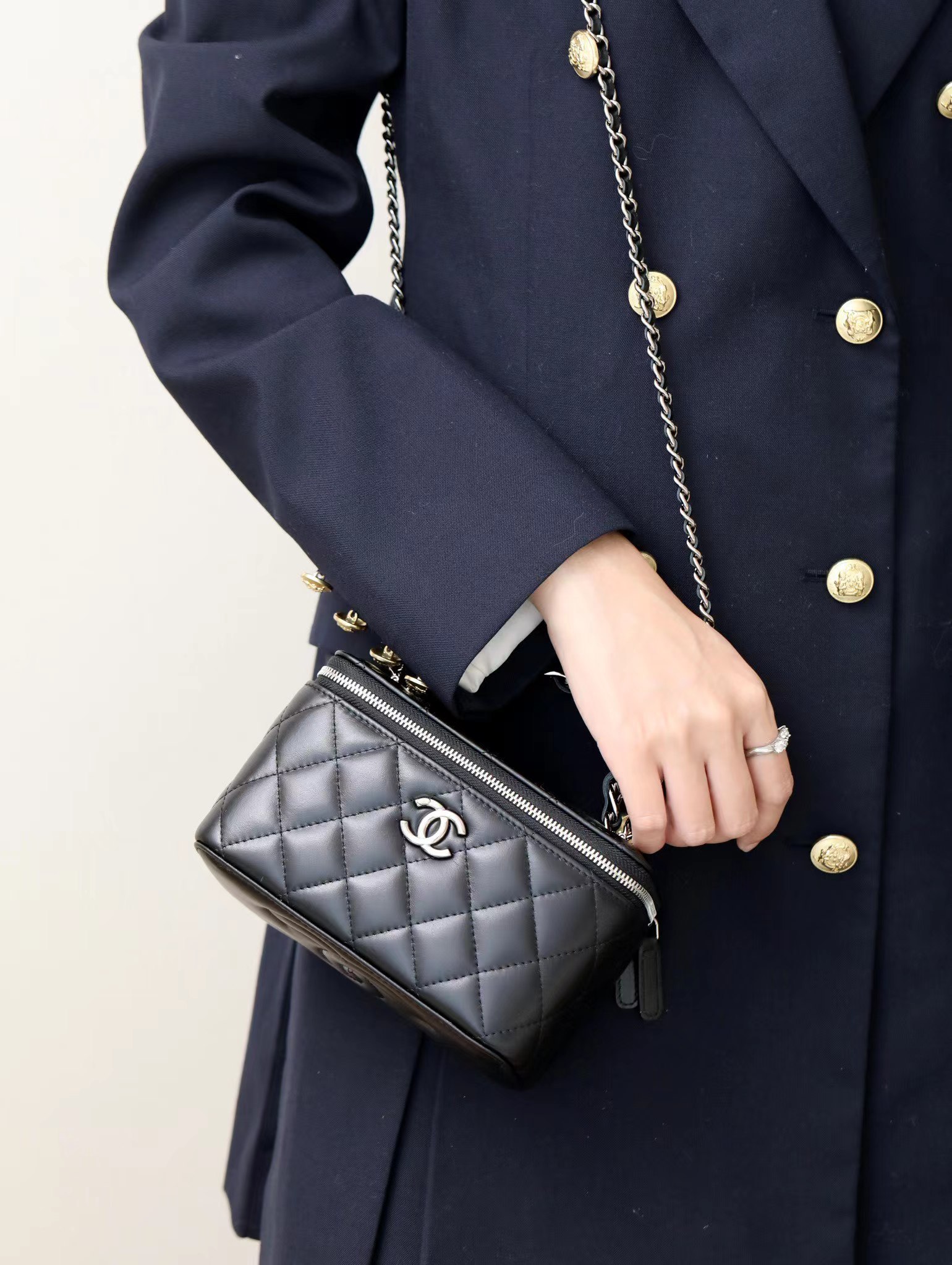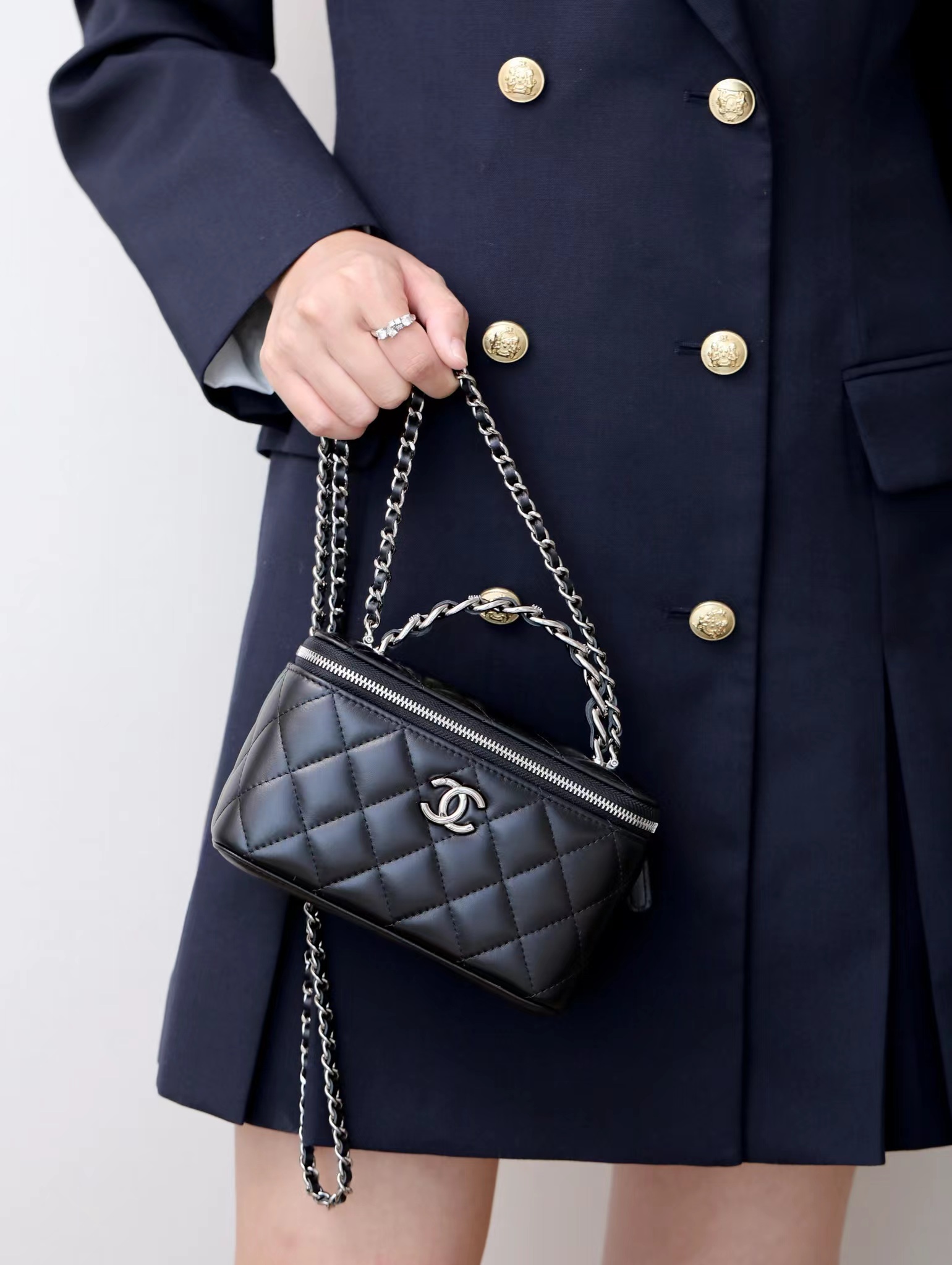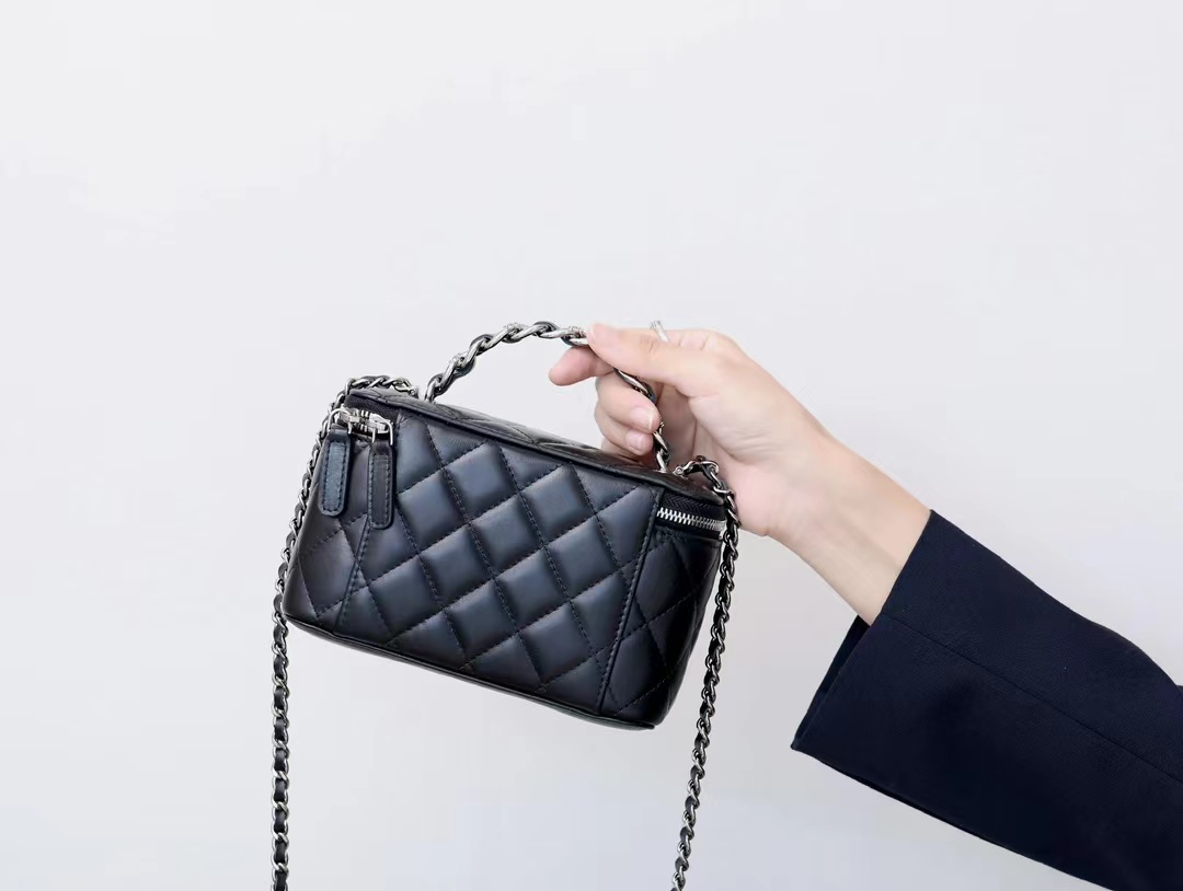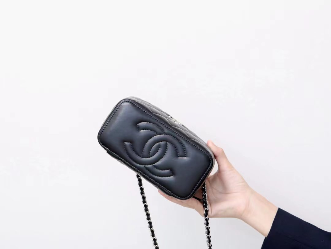 cha 金属手腕长盒子,小红书种草冠军 ,黑色搭配枪扣的手柄,方便手拎,链条的长度刚好斜挎 ,口红包如果是时尚达人必备的一款的话 ,那么这款长盒子也是必不可少的 ,主要能容下手机
