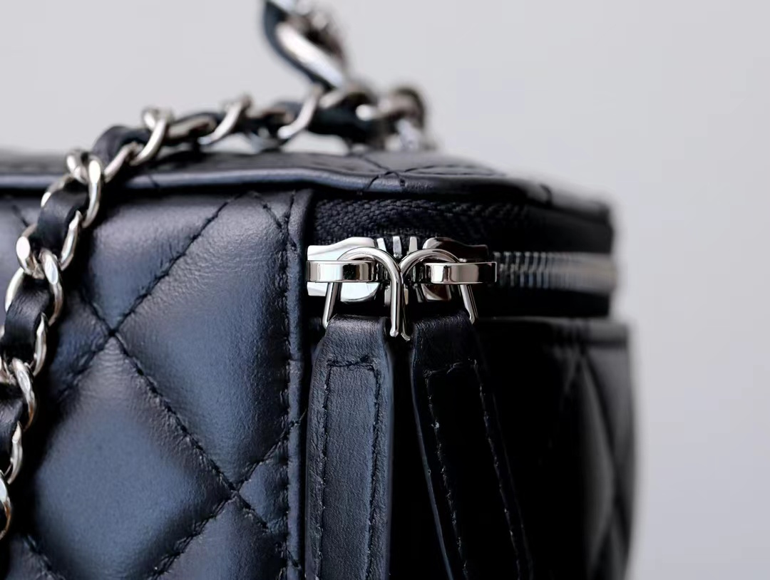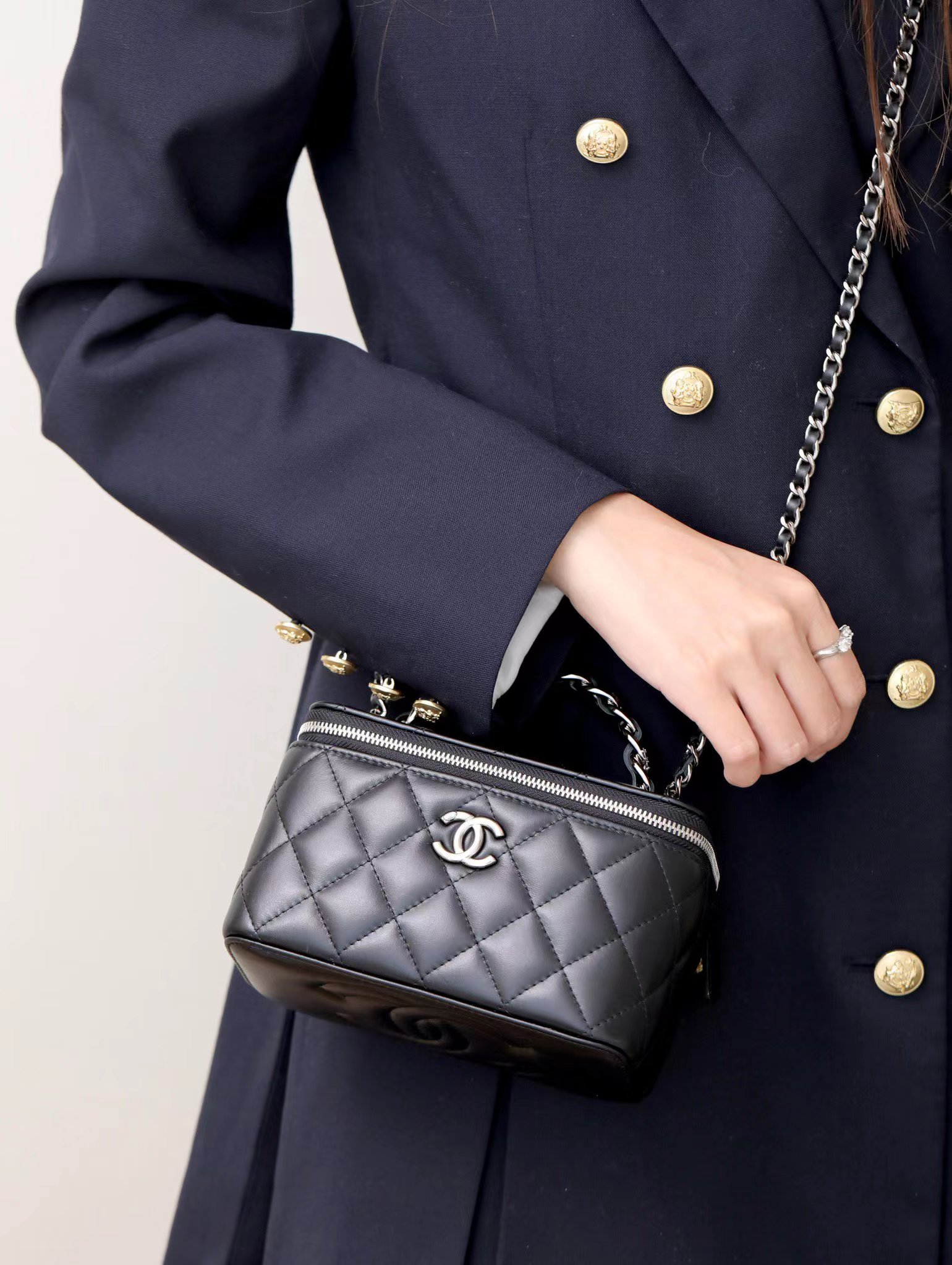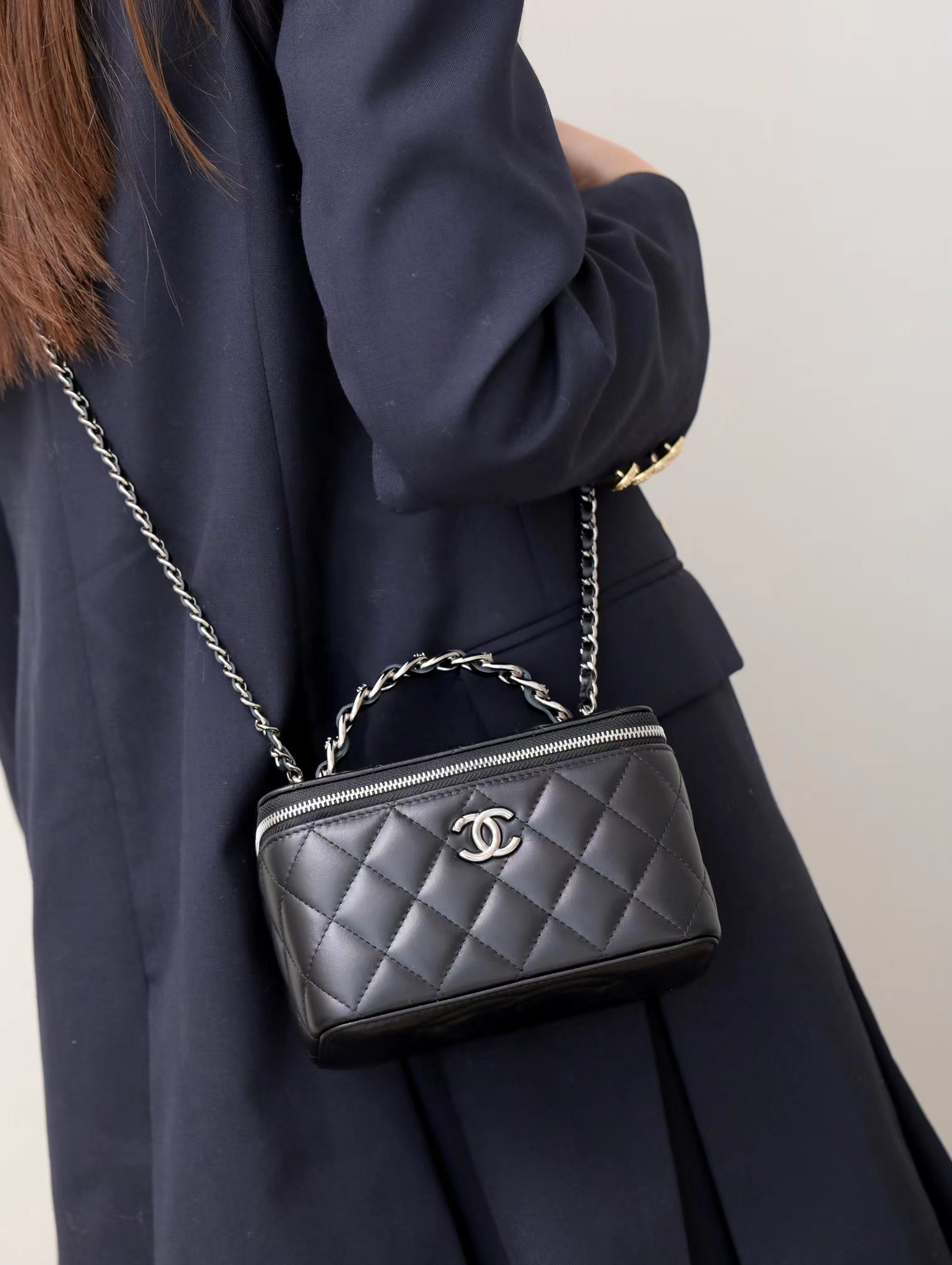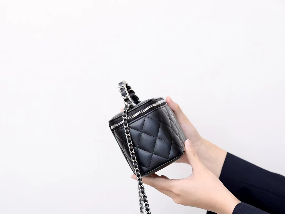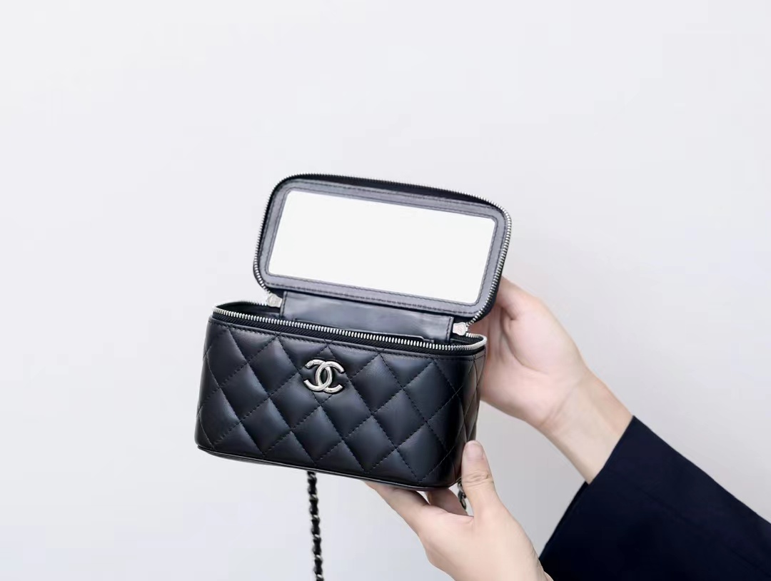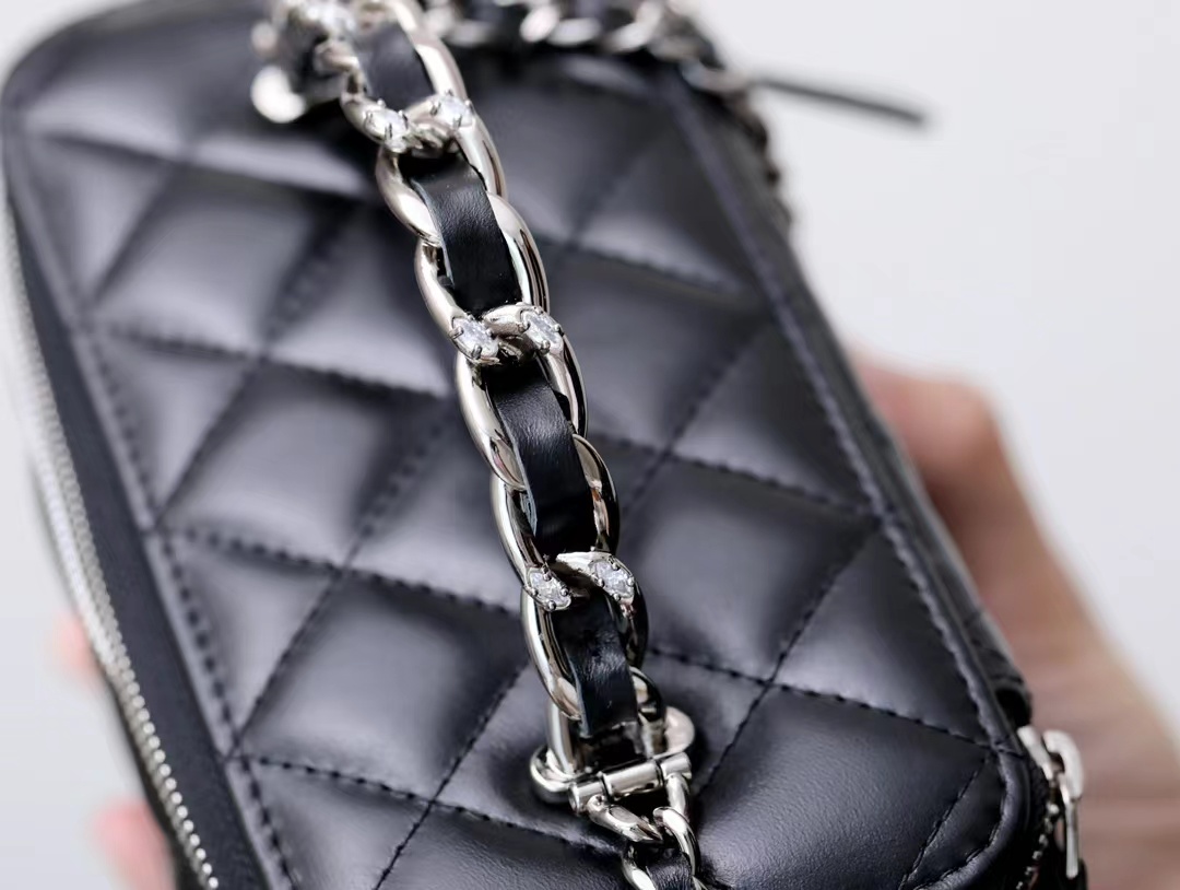 cha 金属手腕长盒子,小红书种草冠军 ,黑色搭配枪扣的手柄,方便手拎,链条的长度刚好斜挎 ,口红包如果是时尚达人必备的一款的话 ,那么这款长盒子也是必不可少的 ,主要能容下手机