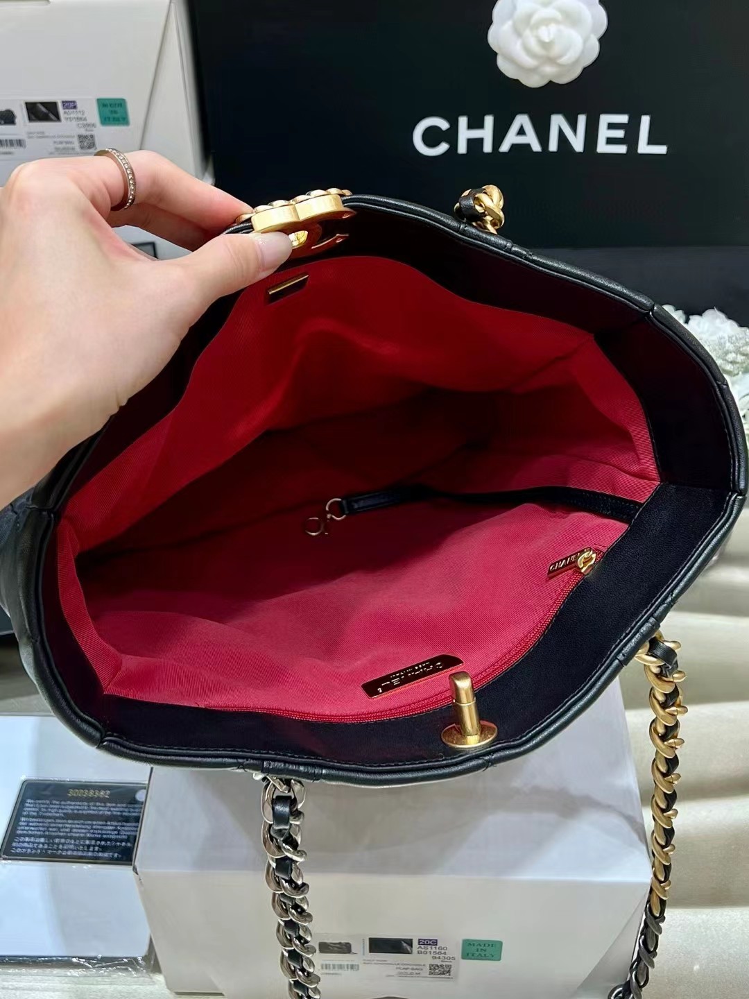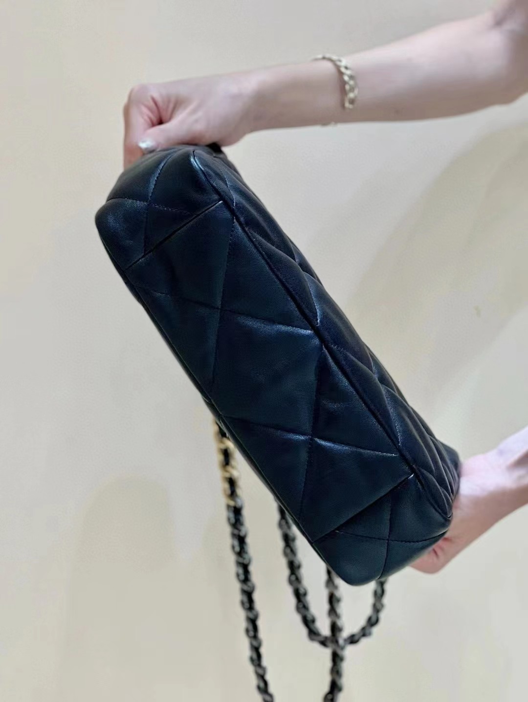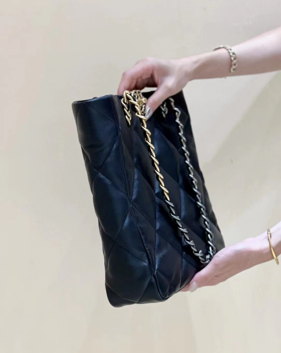 22b很受欢迎的托特购物包,容量惊人沿用经典19元素,实物非常经典耐看自重也比较轻进口柔软小羊皮,手感超好