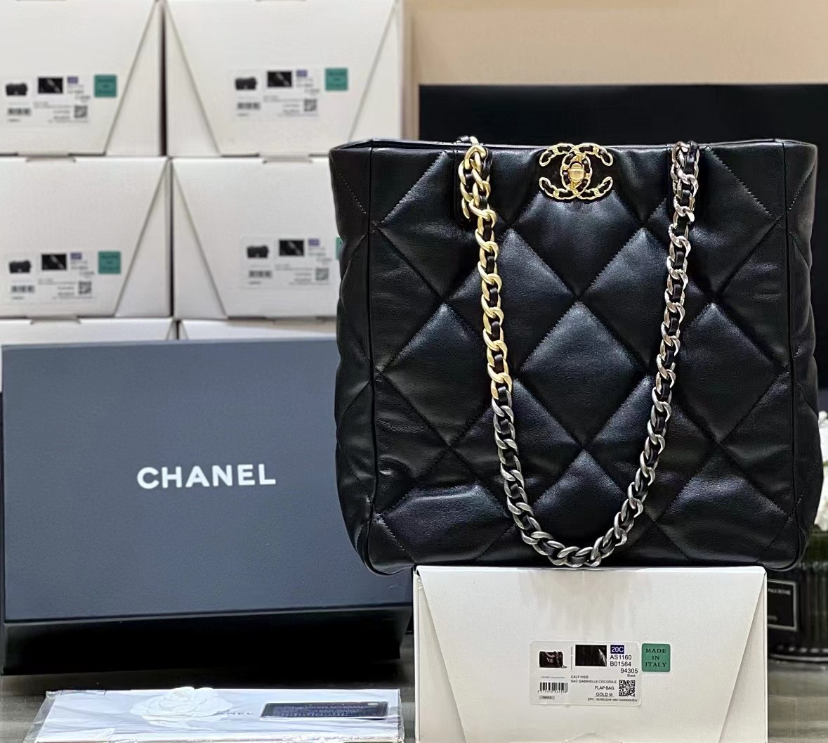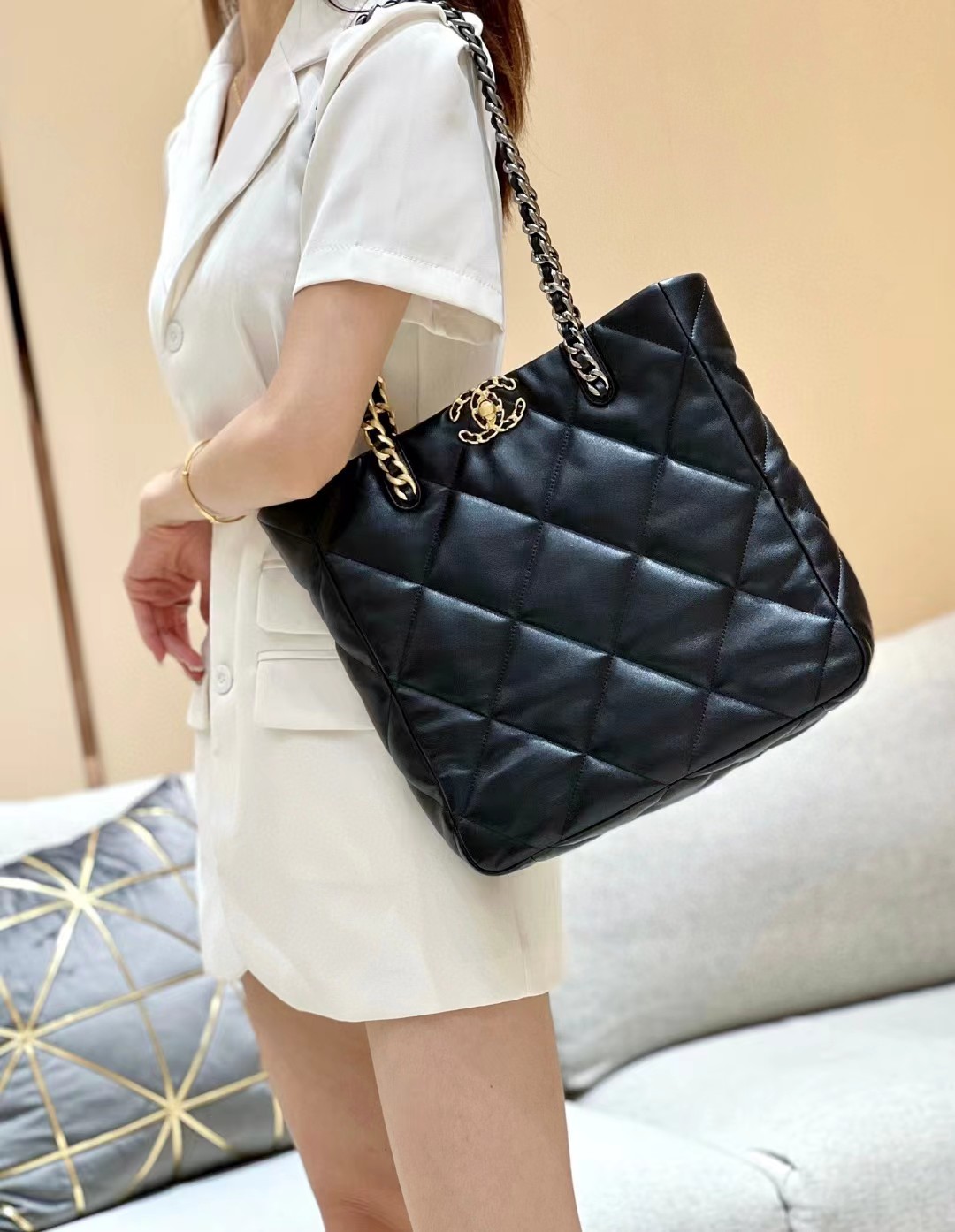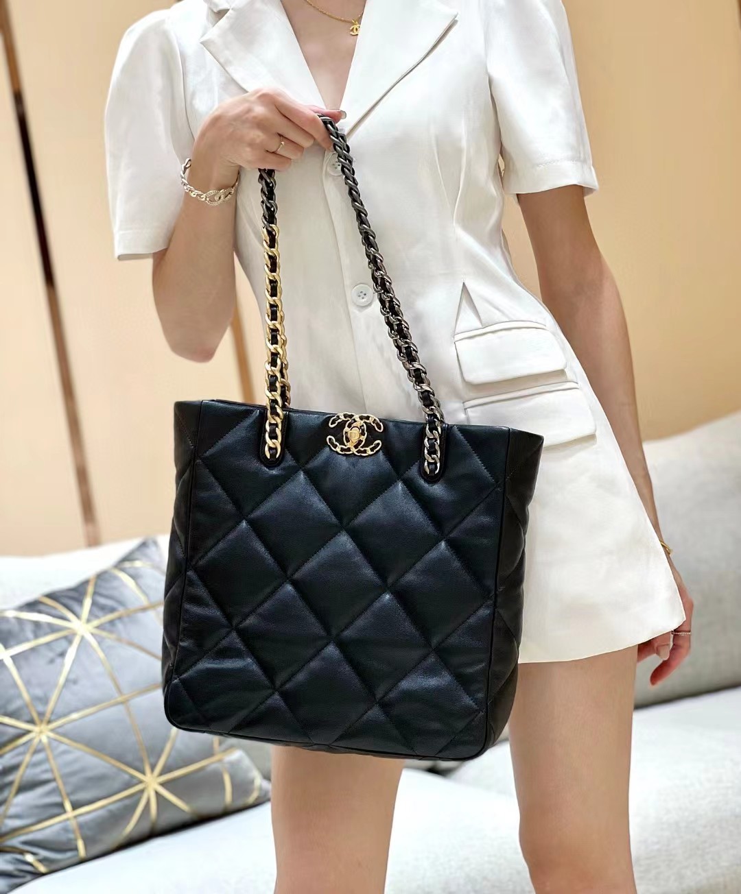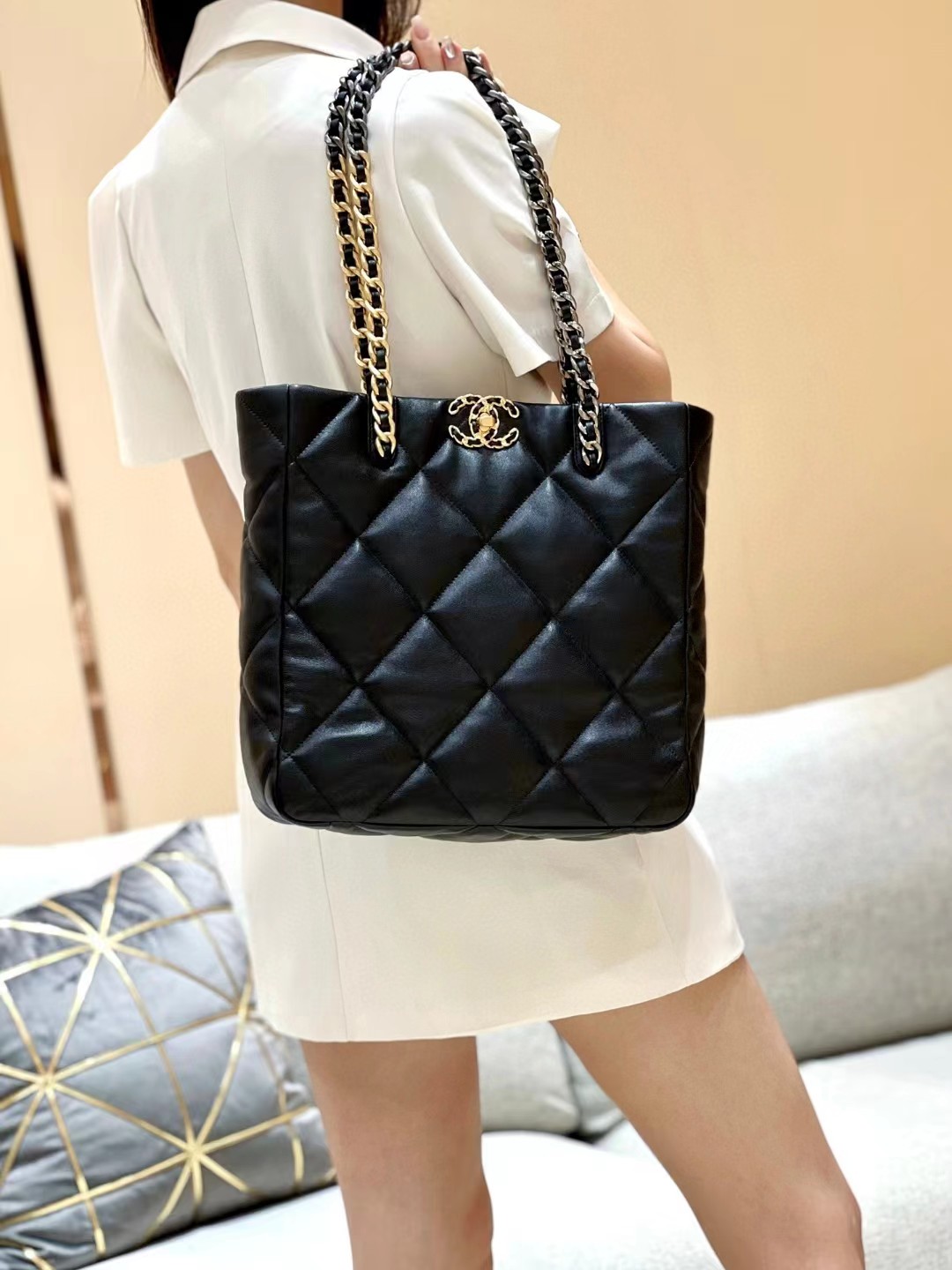 CHANEL 香奈儿 19 Shopping Bag链条小羊皮托特包